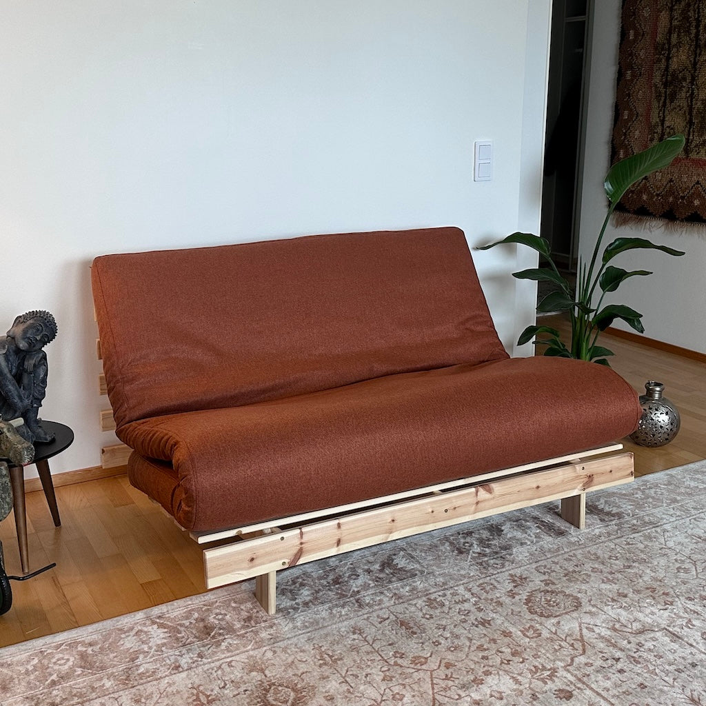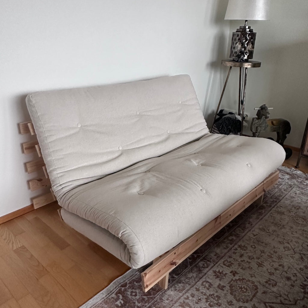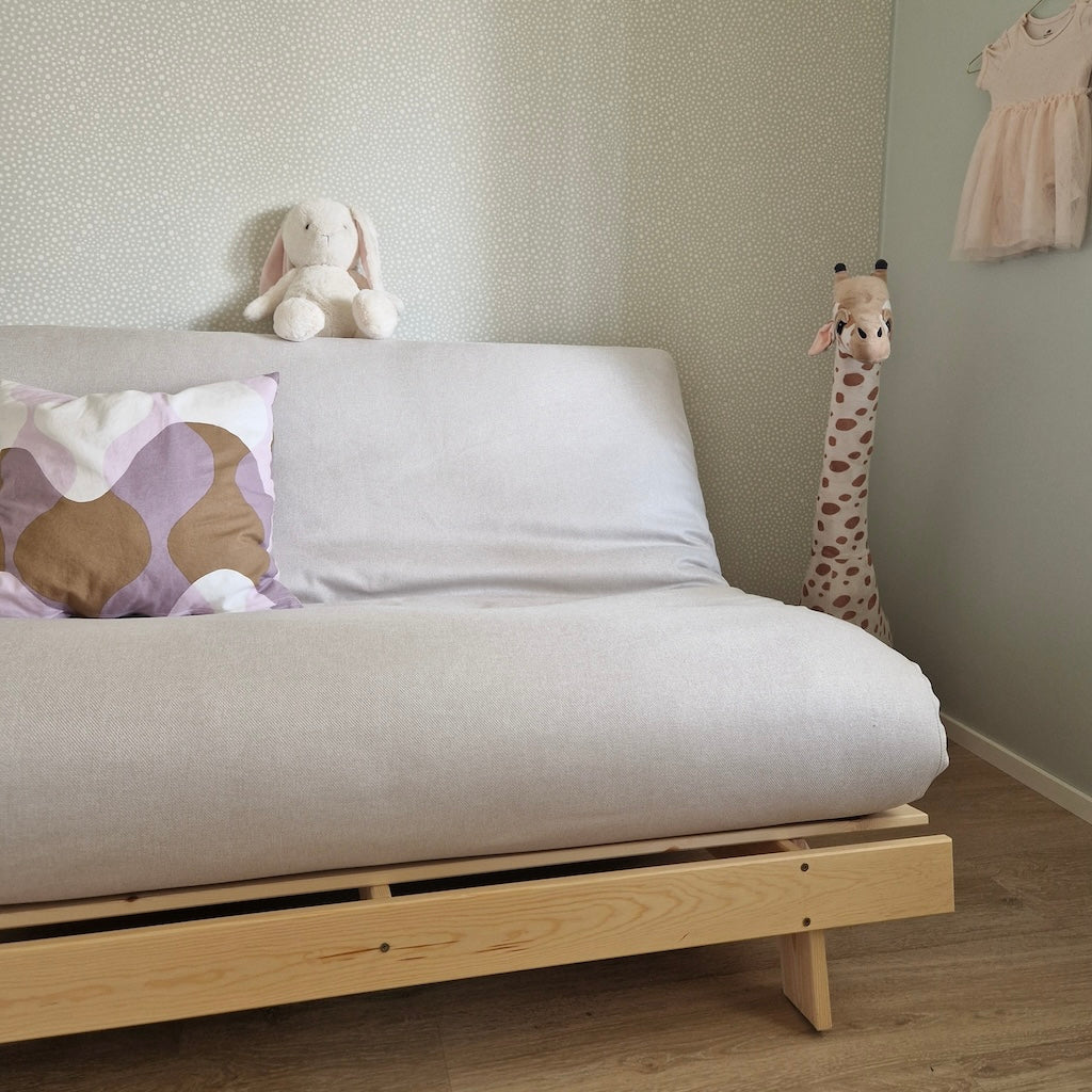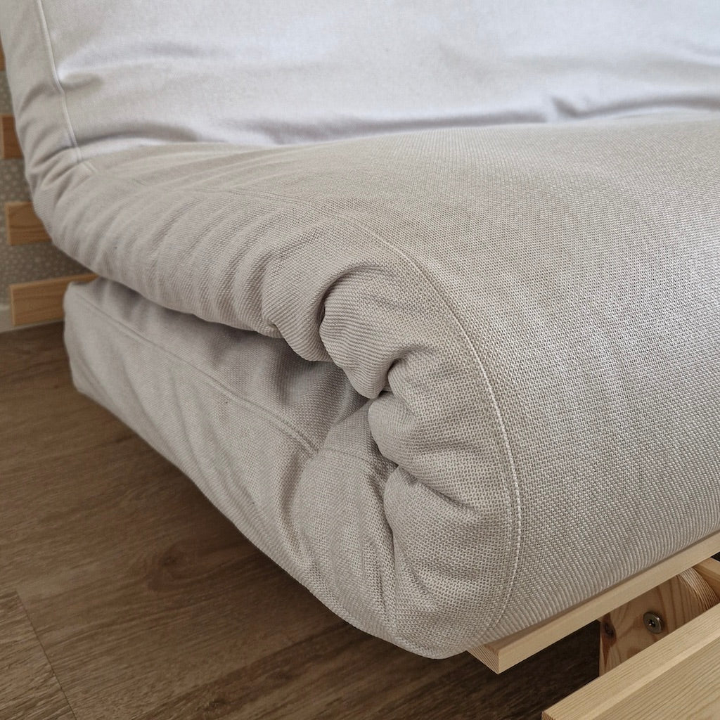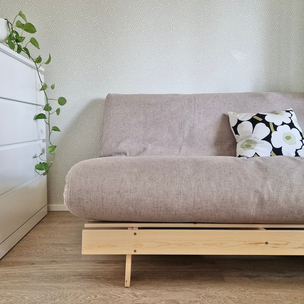 Suunnittelimme futonsohvien futonpatjoille oman tyylikkään irtopäällisen, jolla on kätevä siistiä futonsohvan patja tai vaikka vaihtaa koko sohvan väriä. Vetoketjulla puettava päällinen on helppo sekä pukea että riisua patjan päältä. Päälliset voi vesipestä 40 asteessa.
