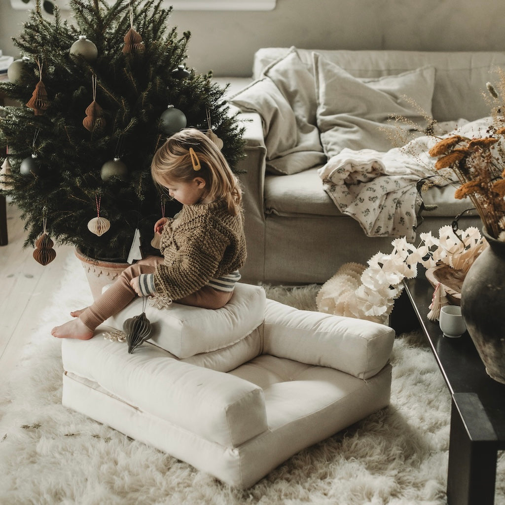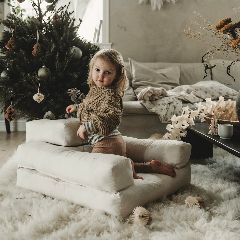 Mini Cube on pehmeä ja mukava. Siinä ei ole kovia osia, joten se on hyvin turvallinen kaluste pienille lapsille. Kokonaan koottuna sitä voi käyttää tuolina.