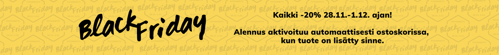 BLACK FRIDAY Kaikki -20%! Alennus aktivoituu automaattisesti ostoskorissa.