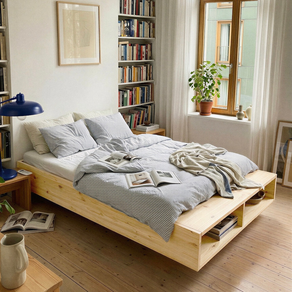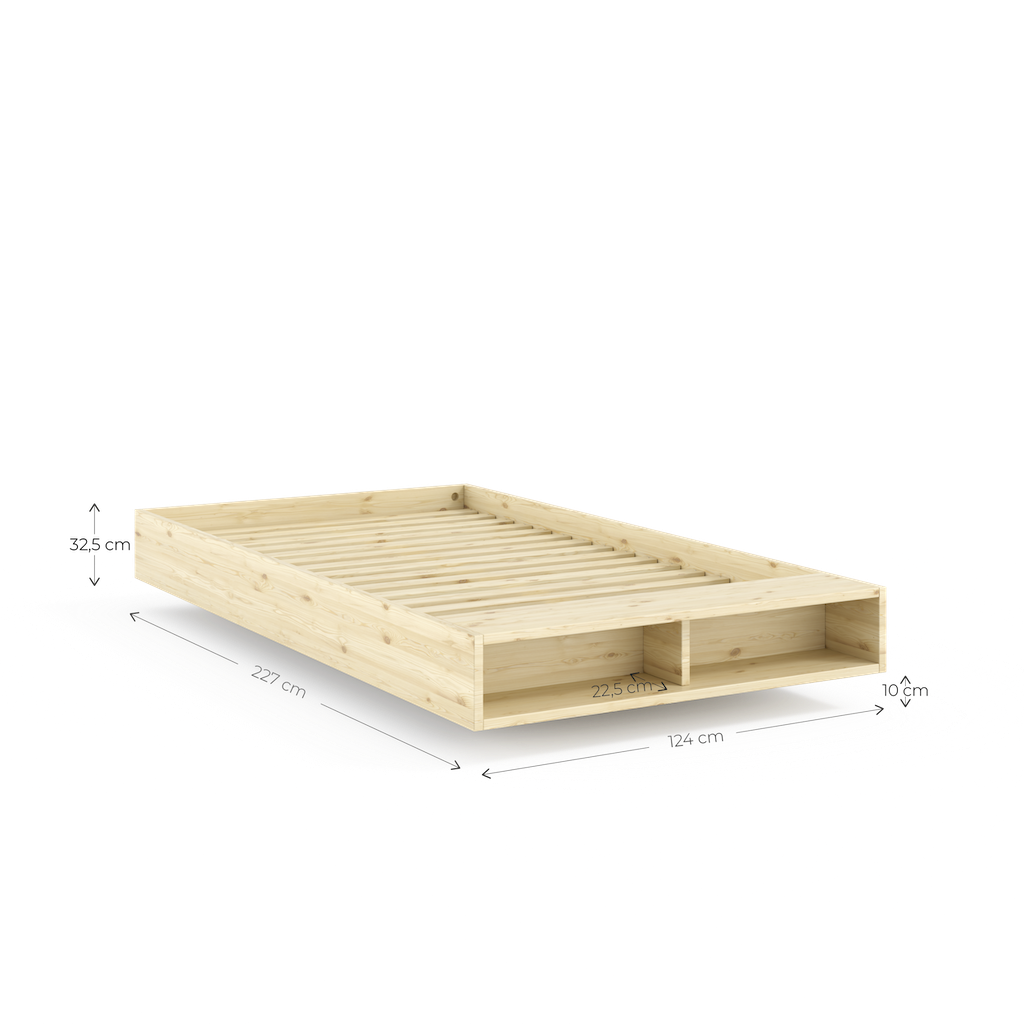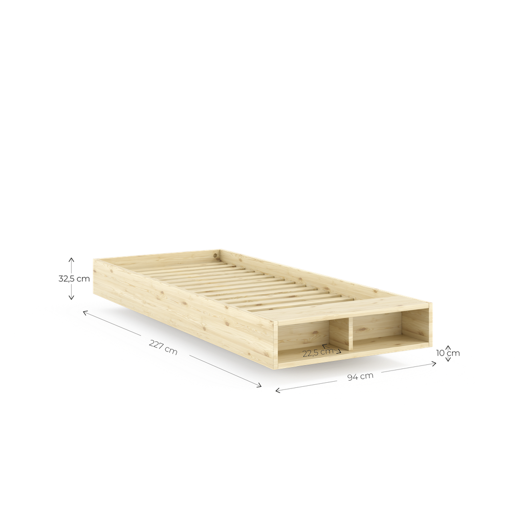 Merge on enemmän kuin pelkkä sänky. Mukana tulee myös päädyssä oleva penkki, jolle voi laskea päiväpeiton yön ajaksi. Penkin alla olevaan säilytyslokeroon on hyvä järjestellä vaikka luettavat kirjat ja lehdet.